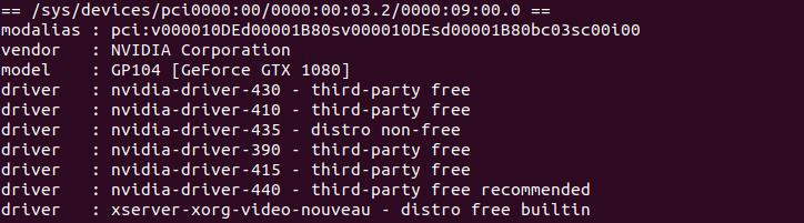 ubuntu-drivers devices 으로 추천 driver 확인