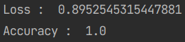 정답은 다 맞췄기 때문에 정확도는 1.0을 찍었고 Loss는 0.895로 나왔습니다