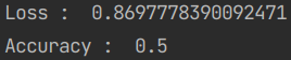 하나는 틀렸기 때문에 정확도는 0.5을 찍었고 Loss는 0.869가 나왔습니다